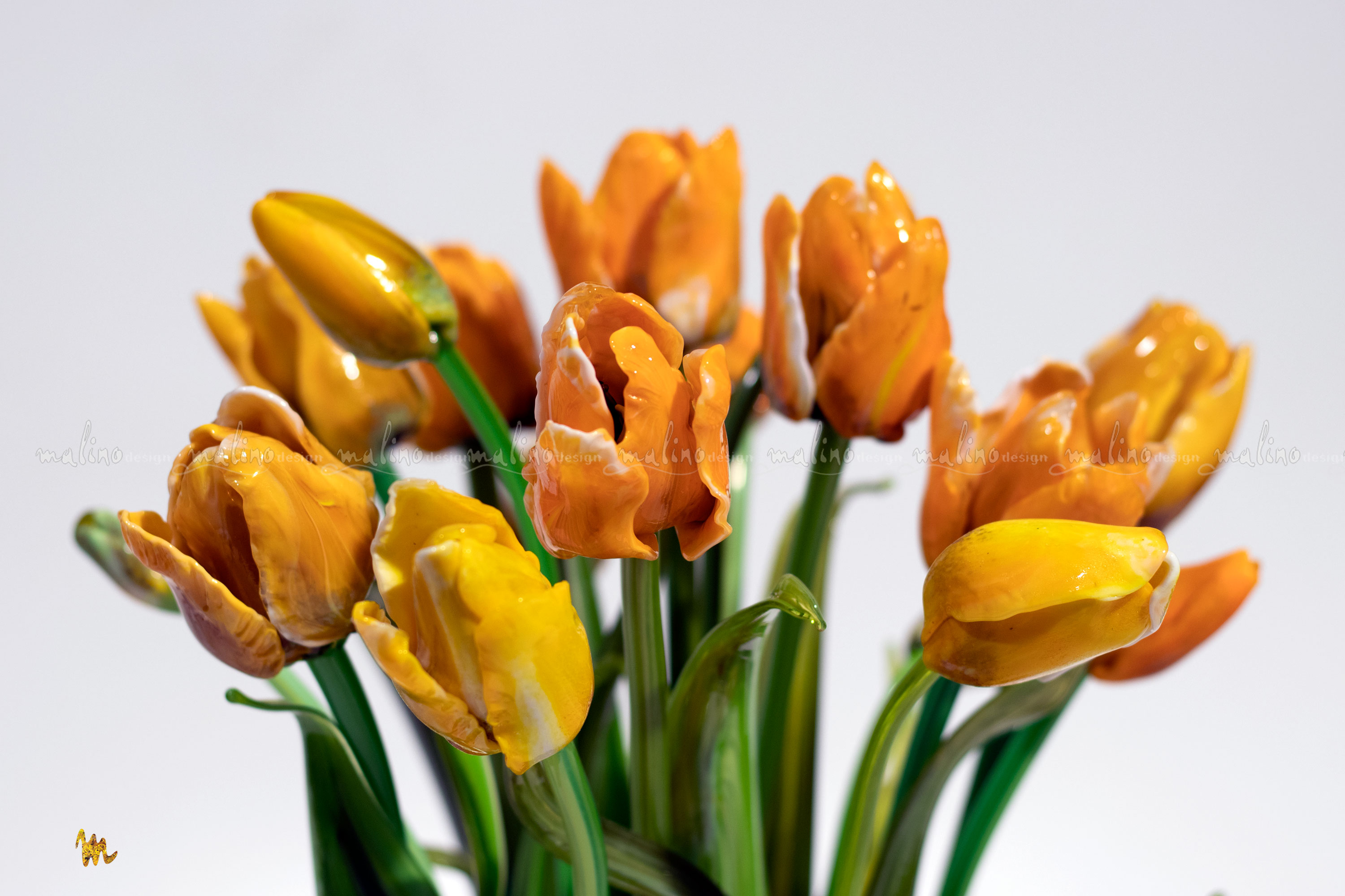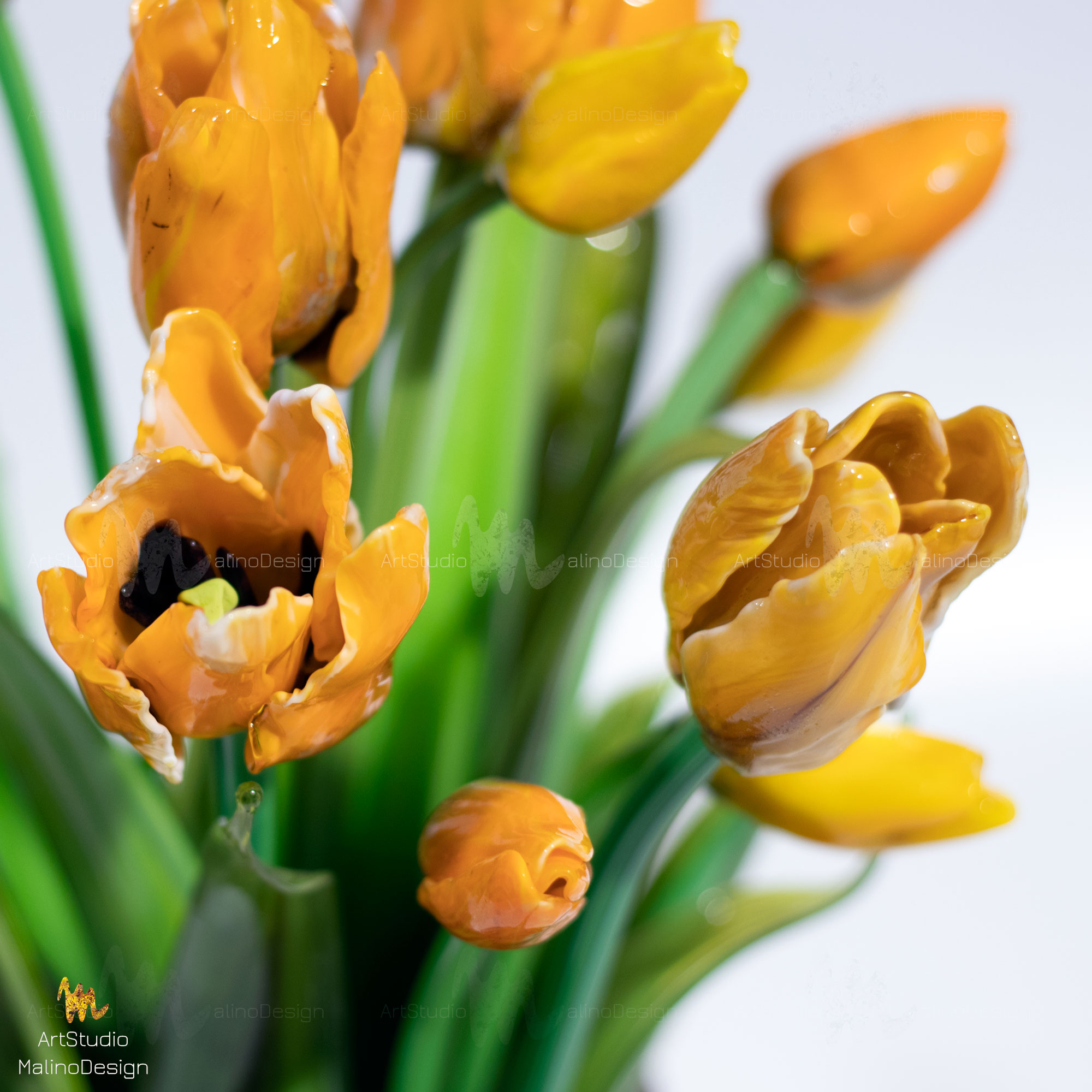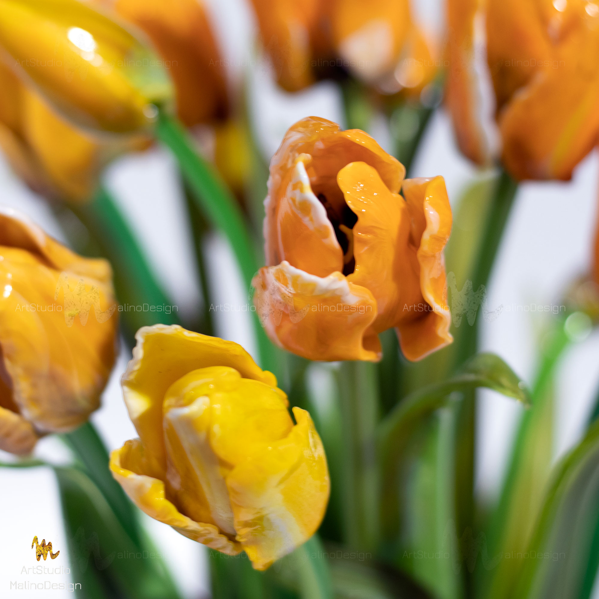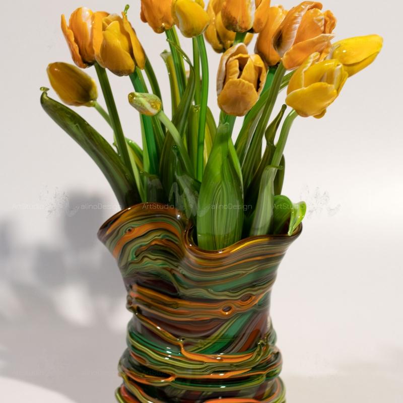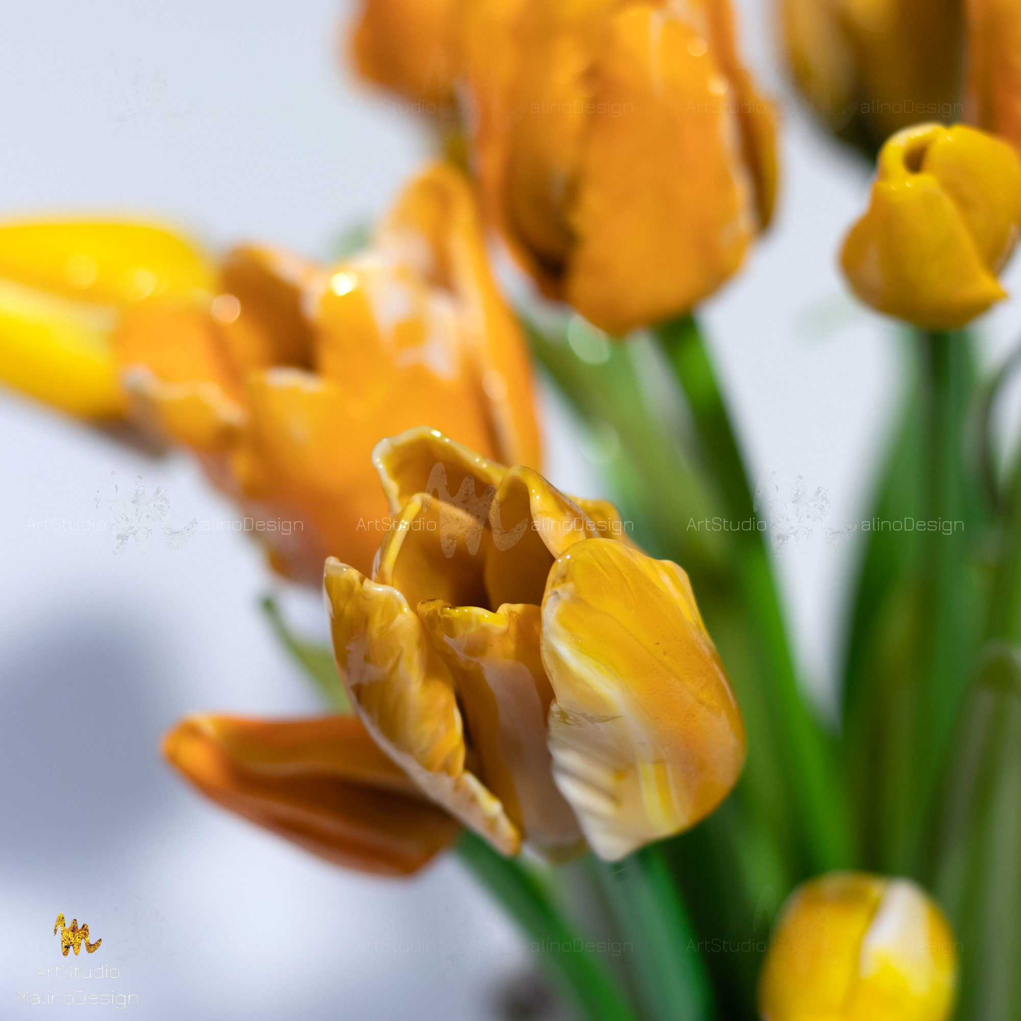 Яркое солнечное настроение этого букета стеклянных тюльпанов наполнит летом и теплом ваш дом, ваши мысли и ваши дни.